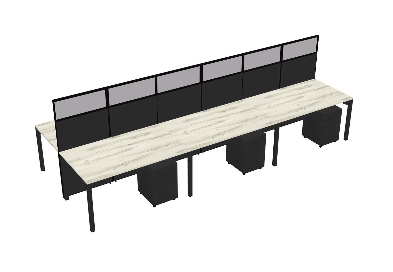 Heinne Holz Shared Rectangular Office Cubicle Panel System With Mobile Drawers For 6 Persons