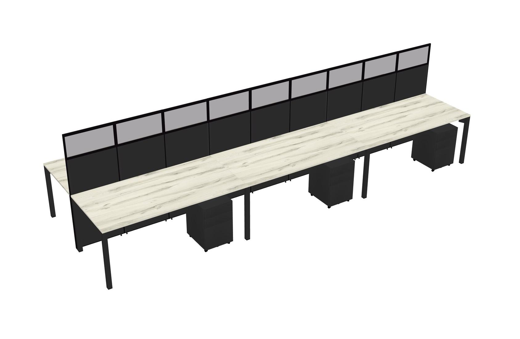 Heinne Holz Shared Rectangular Office Cubicle Panel System With Mobile Drawers For 6 Persons