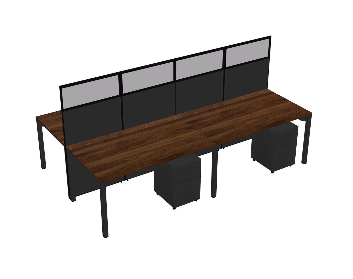 Columbia Walnut Shared Rectangular Office Cubicle Panel System With Mobile Drawers For 4 Persons