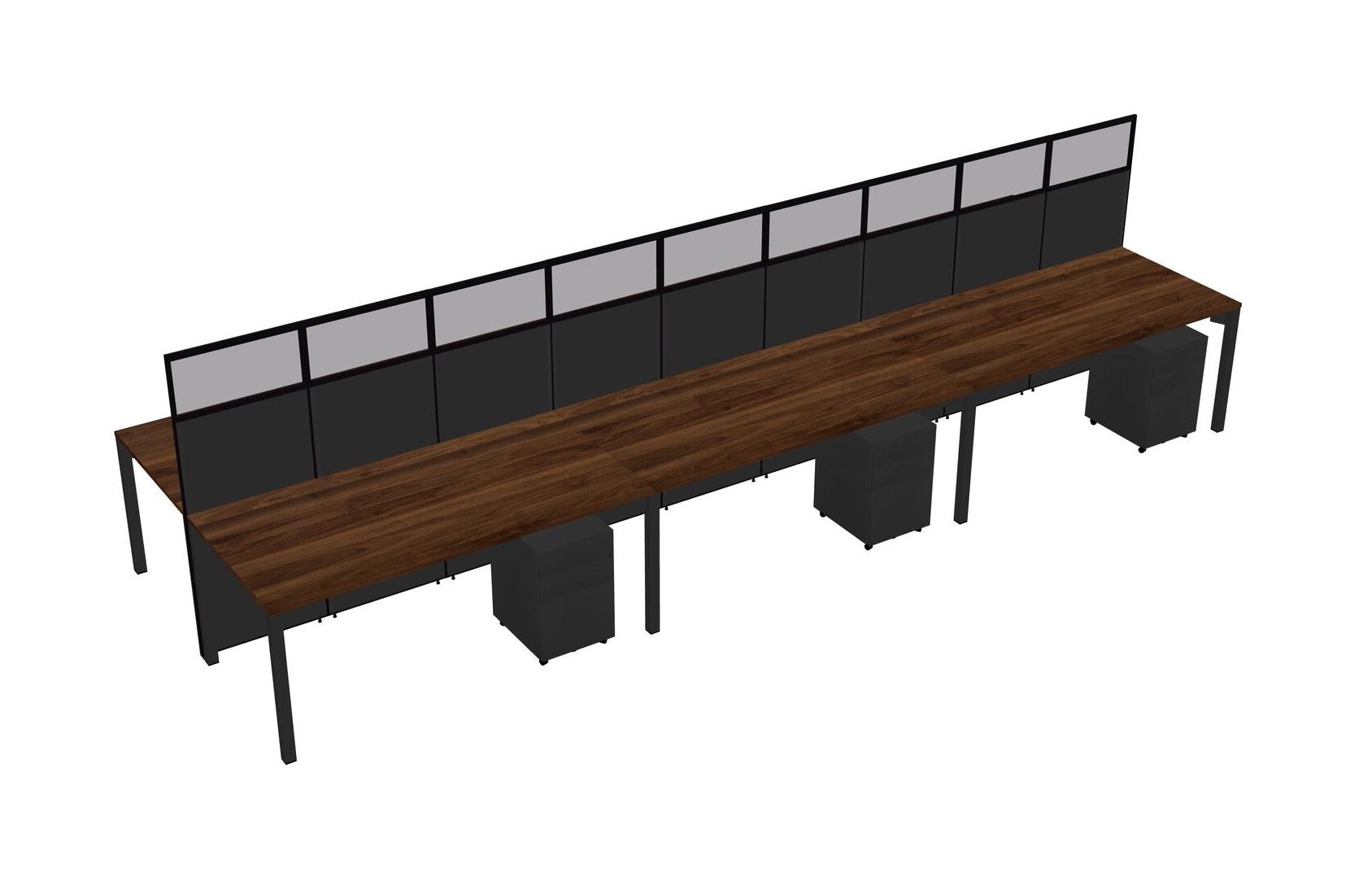 Columbia Walnut Shared Rectangular Office Cubicle Panel System With Mobile Drawers For 6 Persons