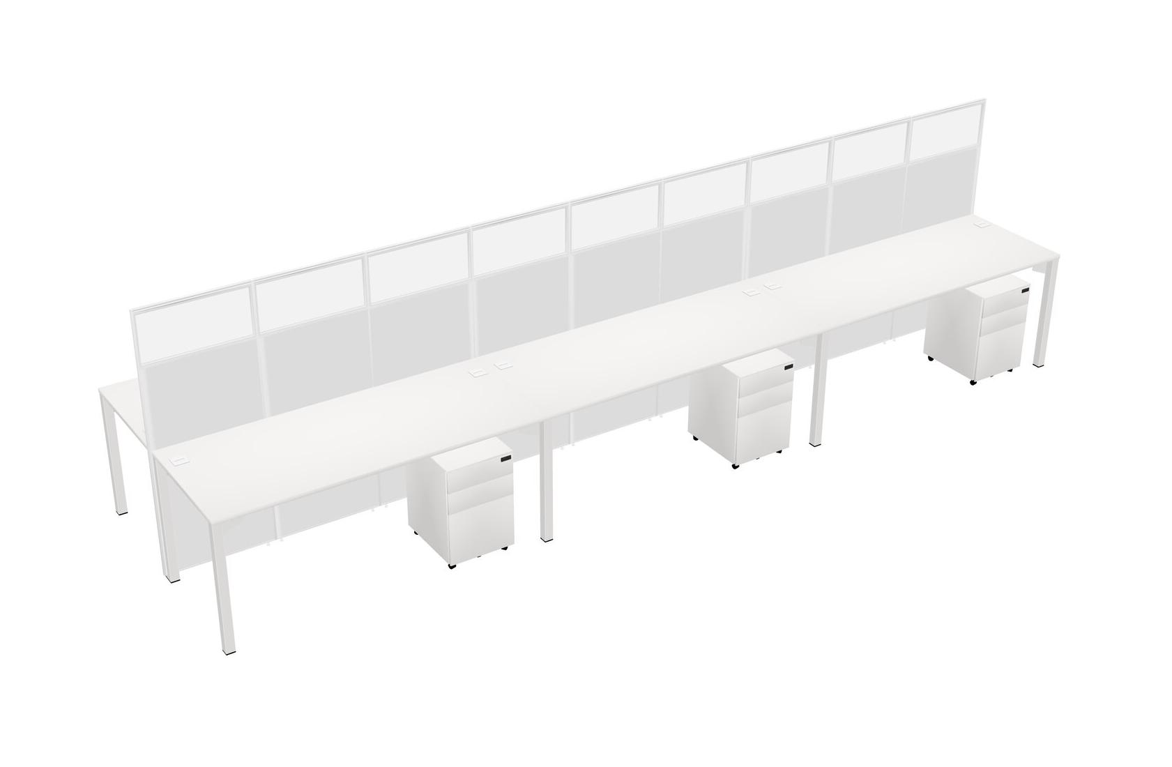 White Shared Rectangular Office Cubicle Panel System With Mobile Drawers For 6 Persons