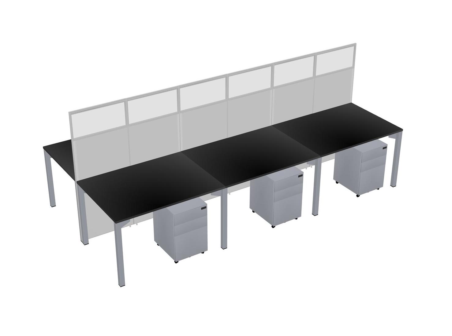 Black Shared Rectangular Office Cubicle Panel System With Mobile Drawers For 6 Persons