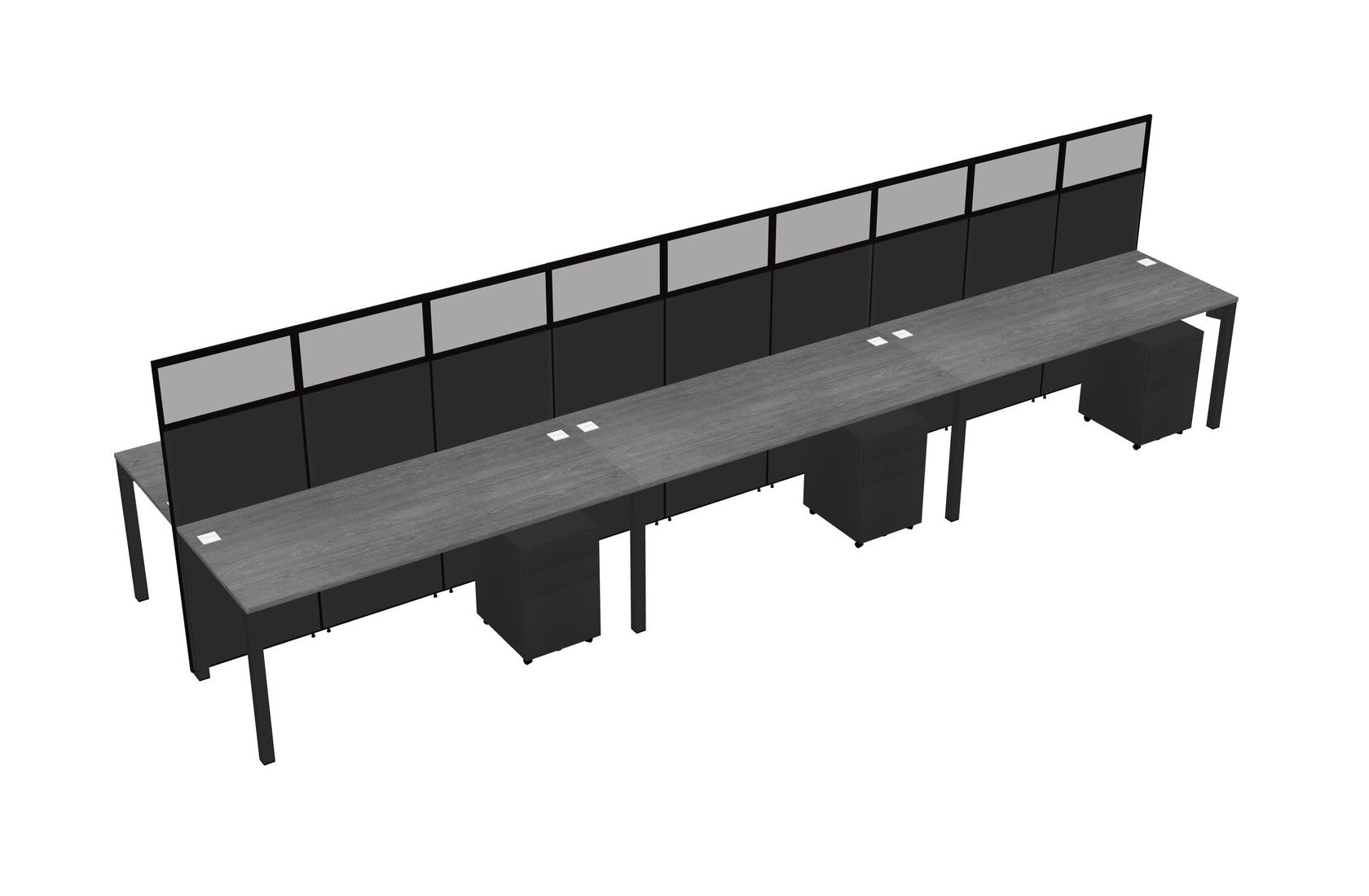 Grey Shared Rectangular Office Cubicle Panel System With Mobile Drawers For 6 Persons