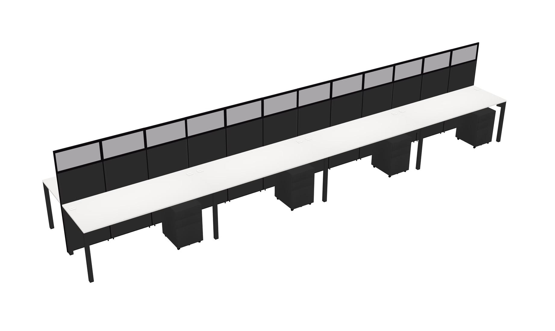 White Shared Rectangular Office Cubicle Panel System With Mobile Drawers For 8 Persons