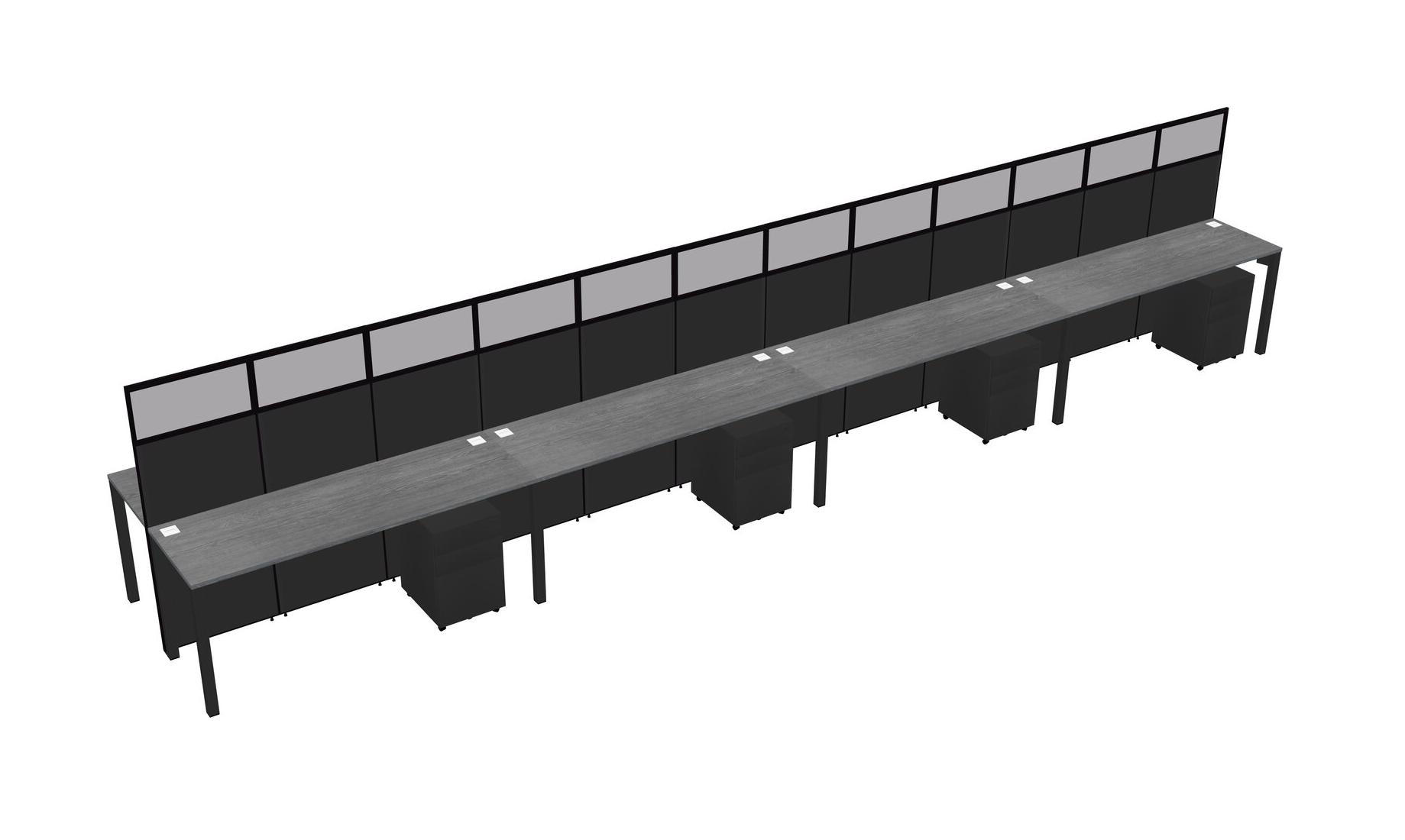 Grey Shared Rectangular Office Cubicle Panel System With Mobile Drawers For 8 Persons