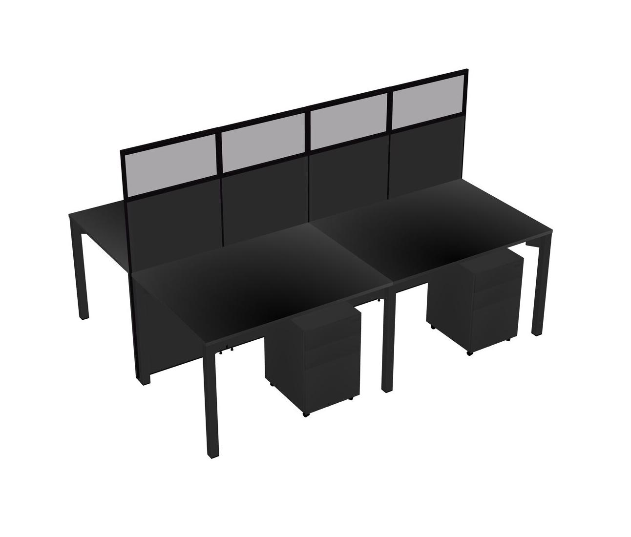 Black Shared Rectangular Office Cubicle Panel System With Mobile Drawers For 4 Persons