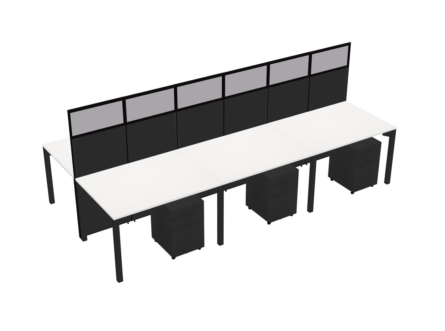 White Shared Rectangular Office Cubicle Panel System With Mobile Drawers For 6 Persons