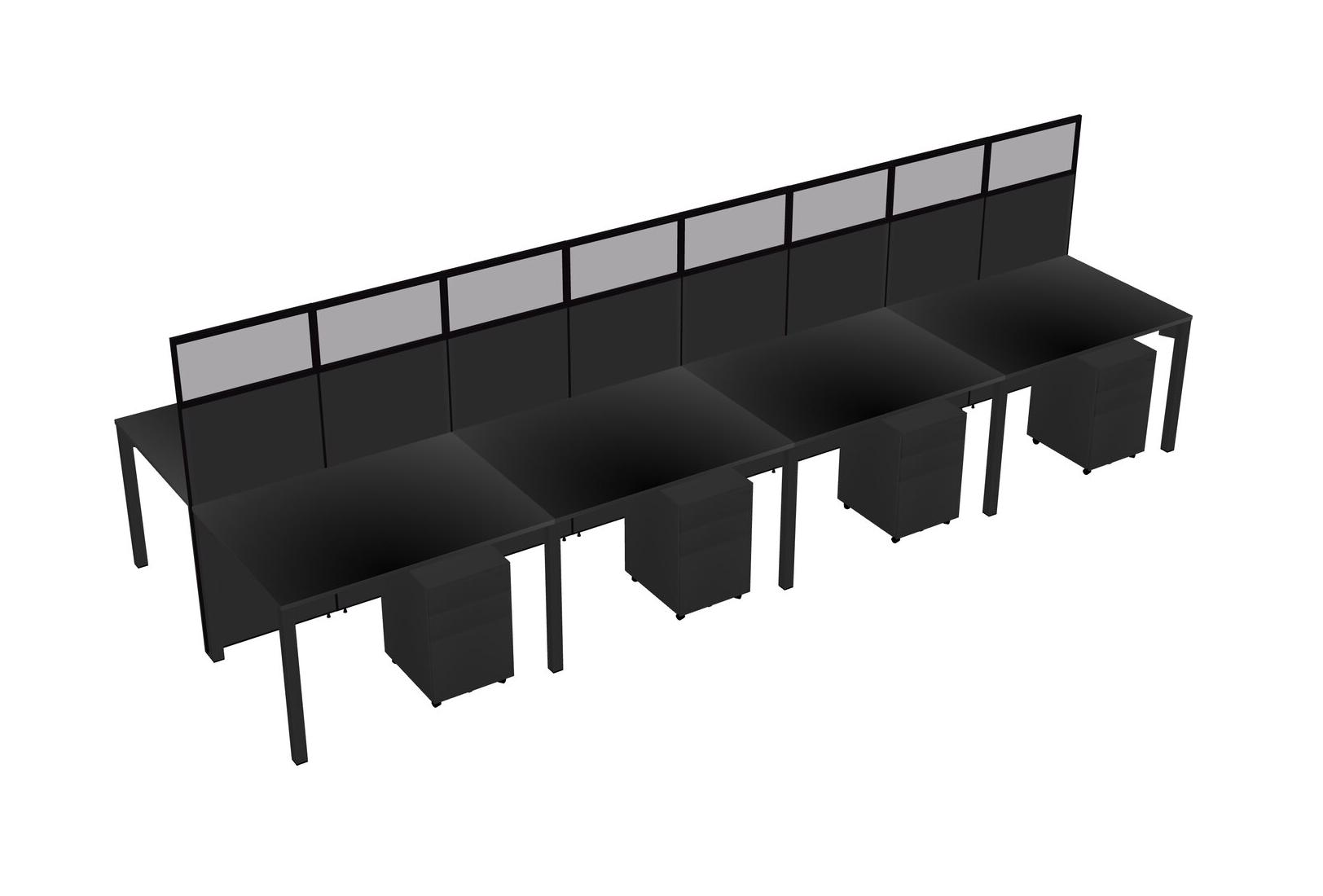 Black Shared Rectangular Office Cubicle Panel System With Mobile Drawers For 8 Persons