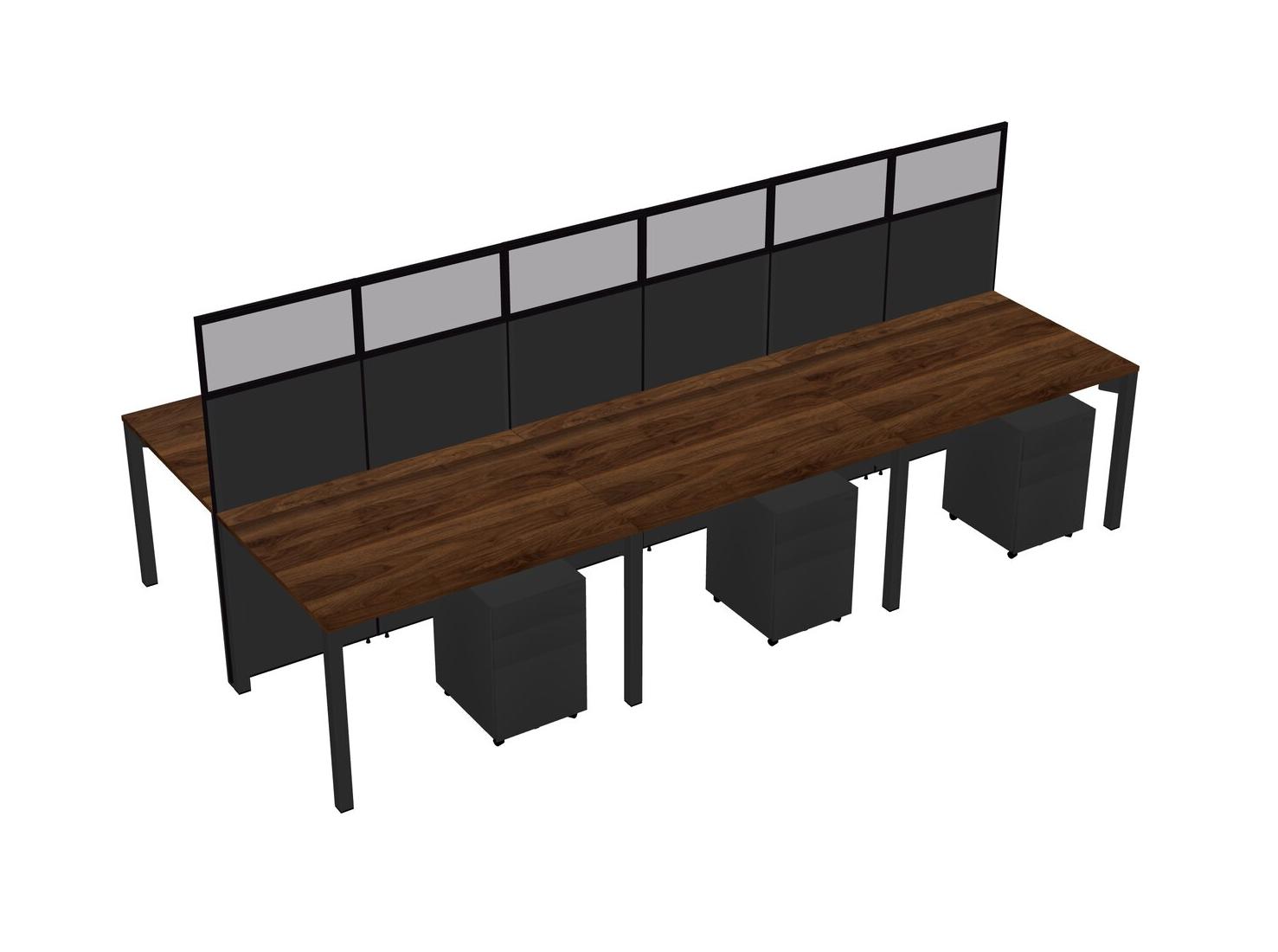 Columbia Walnut Shared Rectangular Office Cubicle Panel System With Mobile Drawers For 6 Persons