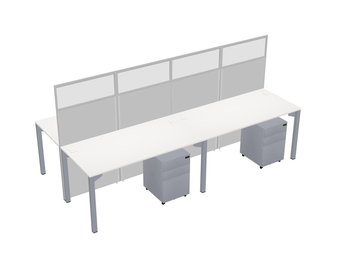 White Shared Rectangular Office Cubicle Panel System With Mobile Drawers For 4 Persons