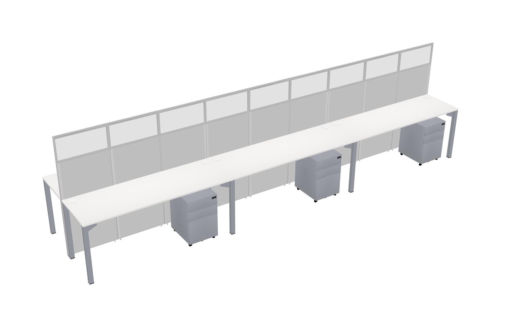 White Shared Rectangular Office Cubicle Panel System With Mobile Drawers For 6 Persons
