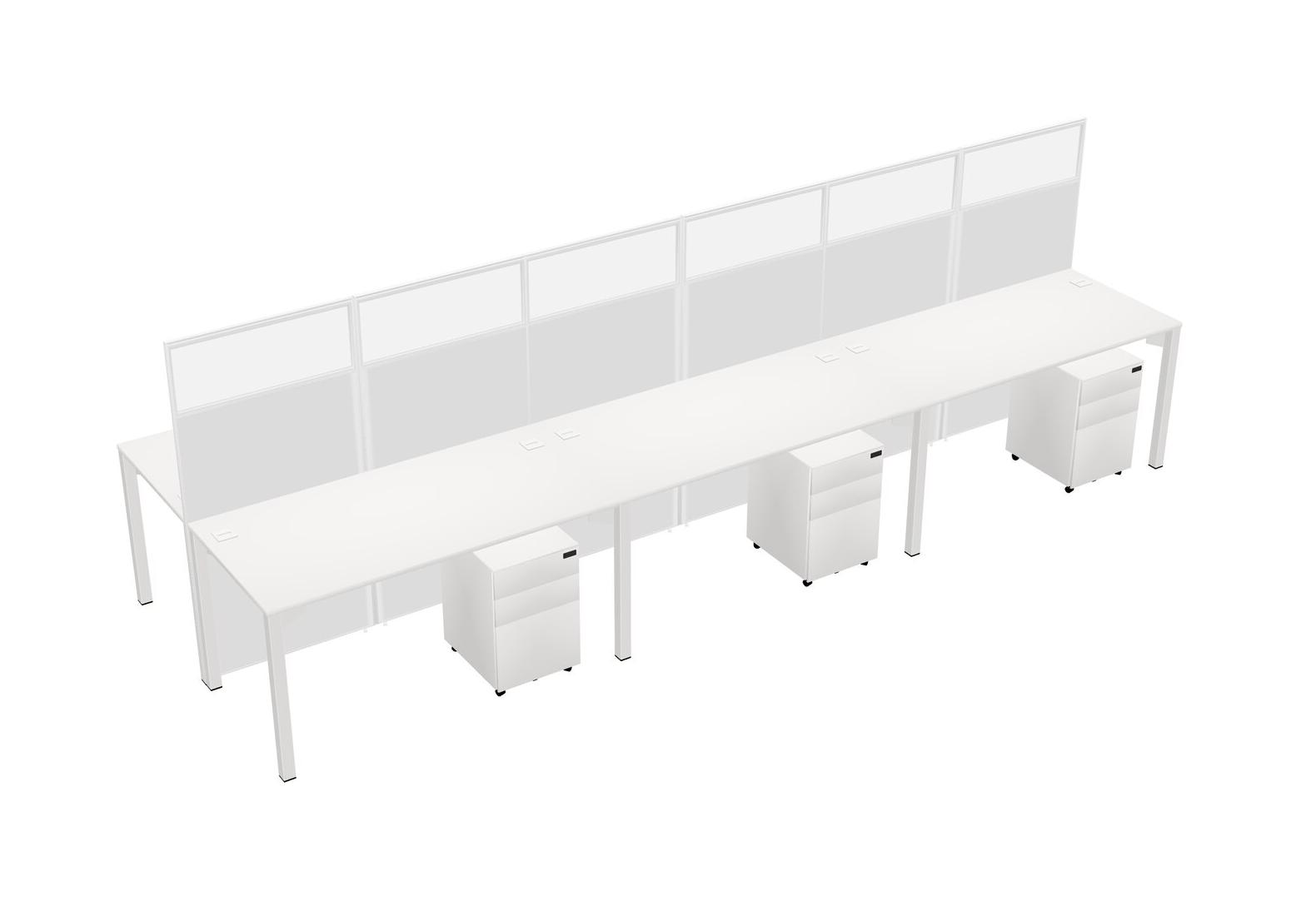 White Shared Rectangular Office Cubicle Panel System With Mobile Drawers For 6 Persons