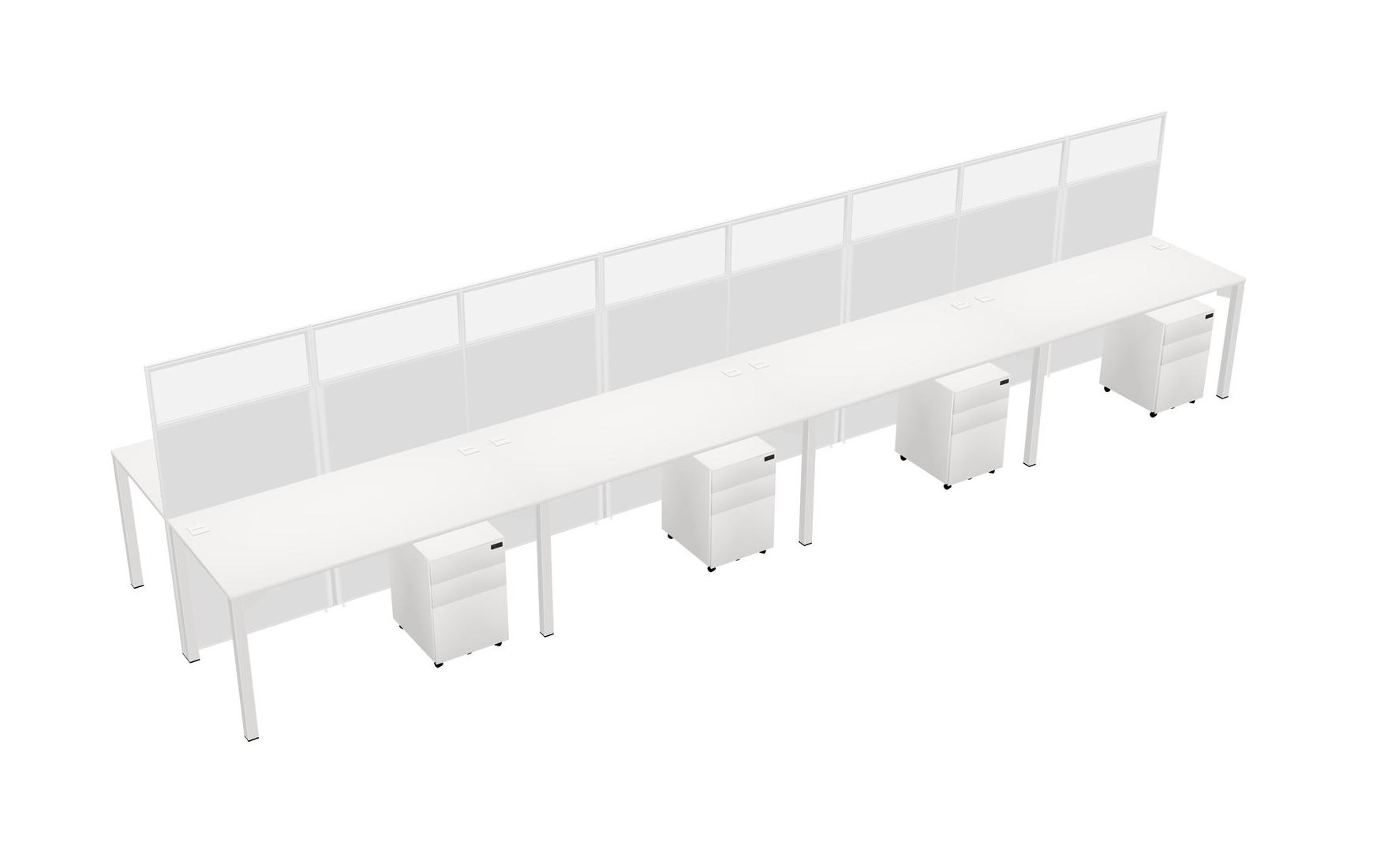 White Shared Rectangular Office Cubicle Panel System With Mobile Drawers For 8 Persons