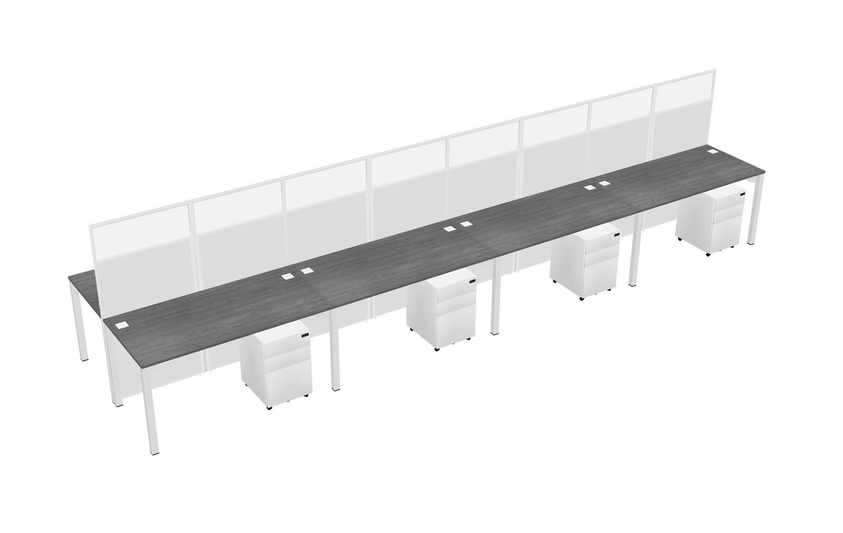 Grey Shared Rectangular Office Cubicle Panel System With Mobile Drawers For 8 Persons