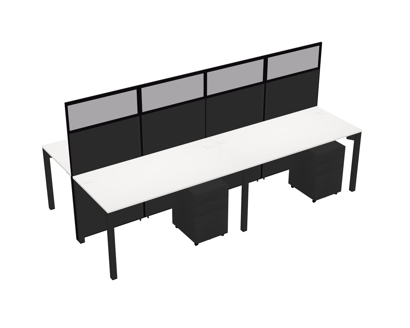 White Shared Rectangular Office Cubicle Panel System With Mobile Drawers For 4 Persons