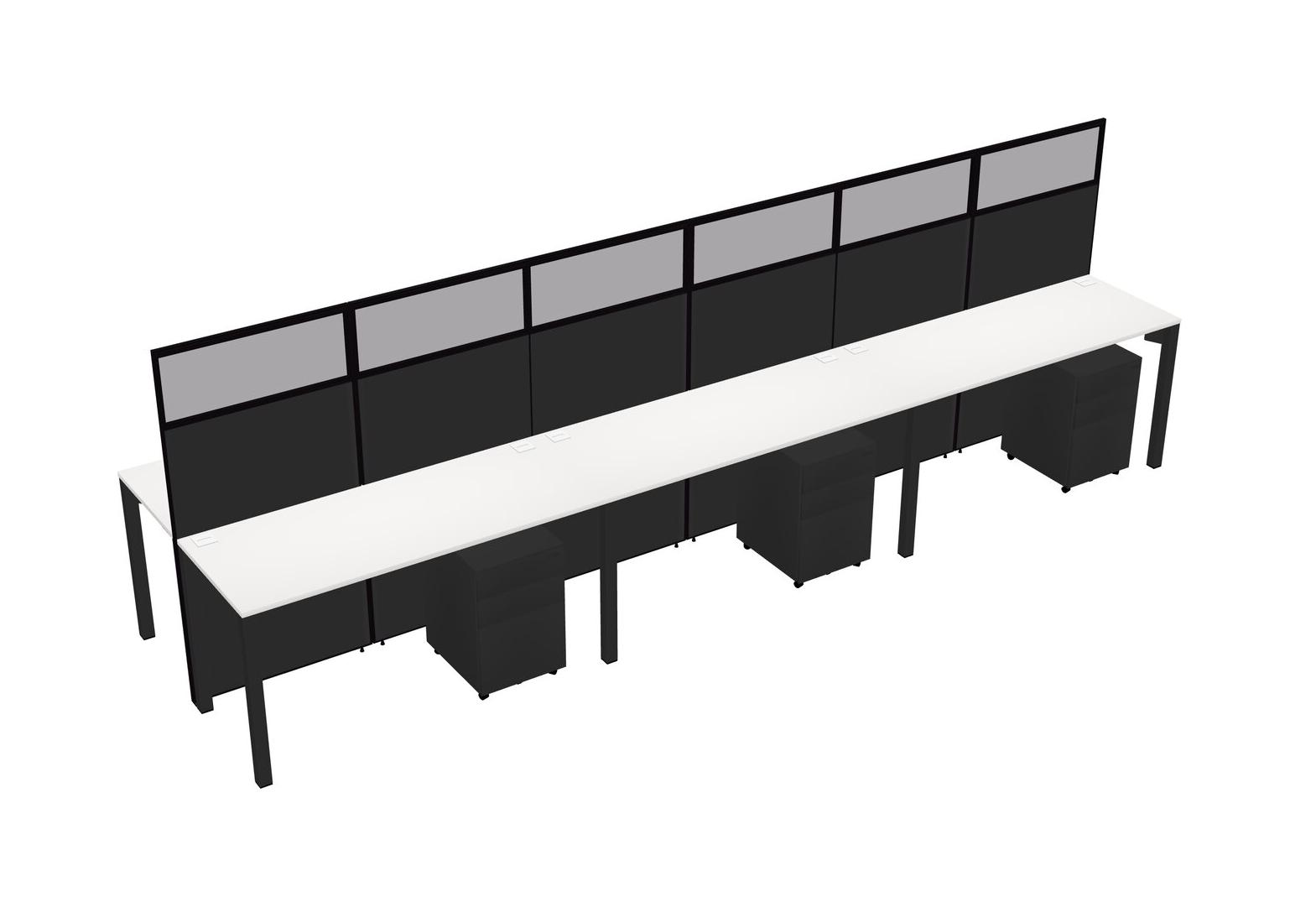White Shared Rectangular Office Cubicle Panel System With Mobile Drawers For 6 Persons