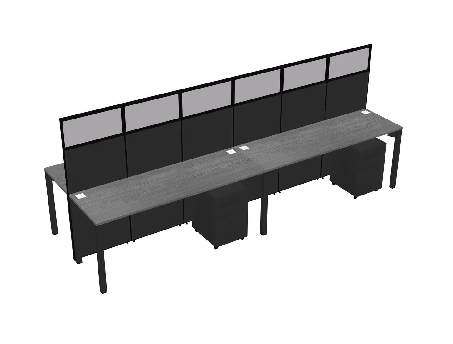 Grey Shared Rectangular Office Cubicle Panel System With Mobile Drawers For 4 Persons
