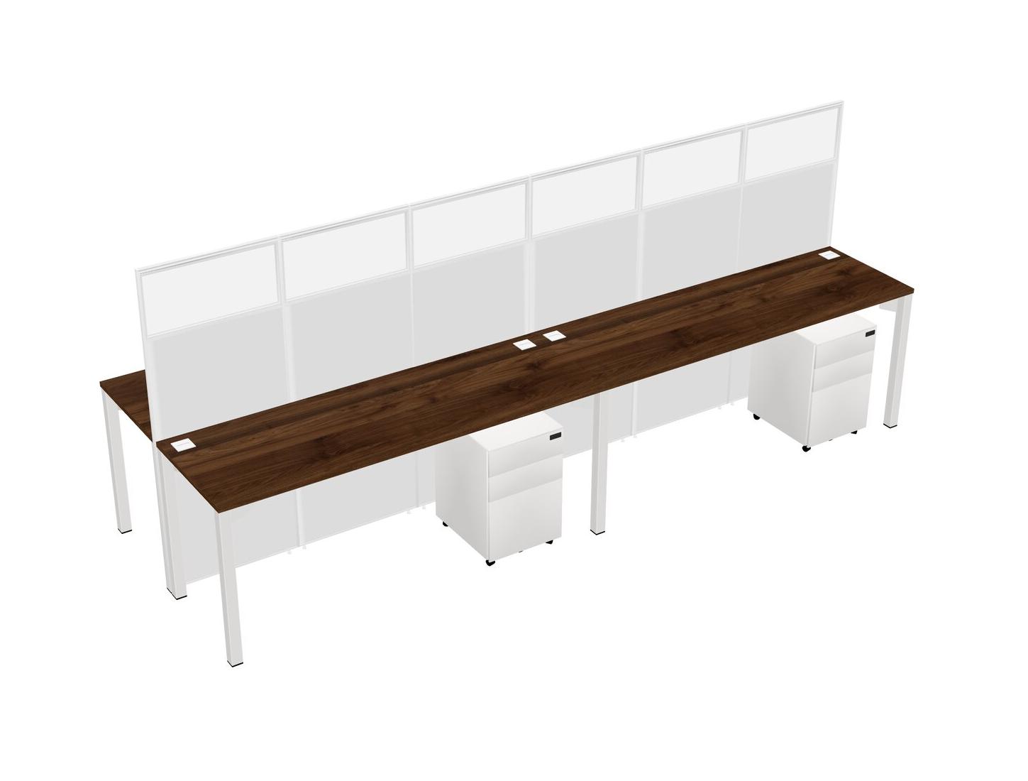 Columbia Walnut Shared Rectangular Office Cubicle Panel System With Mobile Drawers For 4 Persons