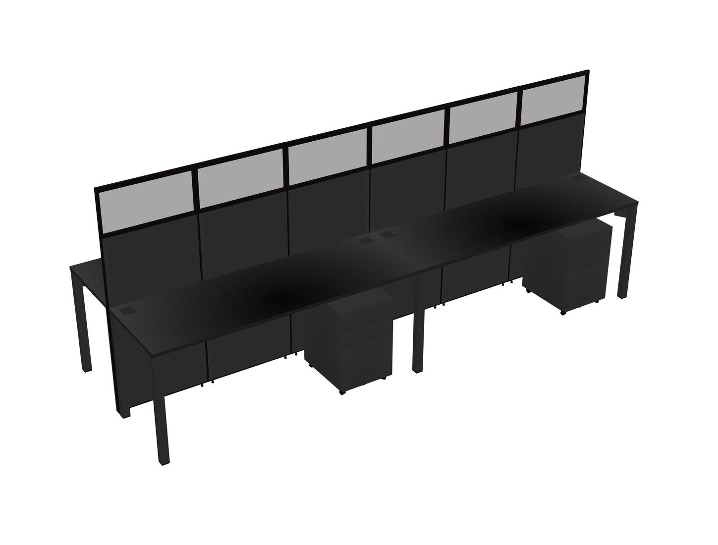 Black Shared Rectangular Office Cubicle Panel System With Mobile Drawers For 4 Persons