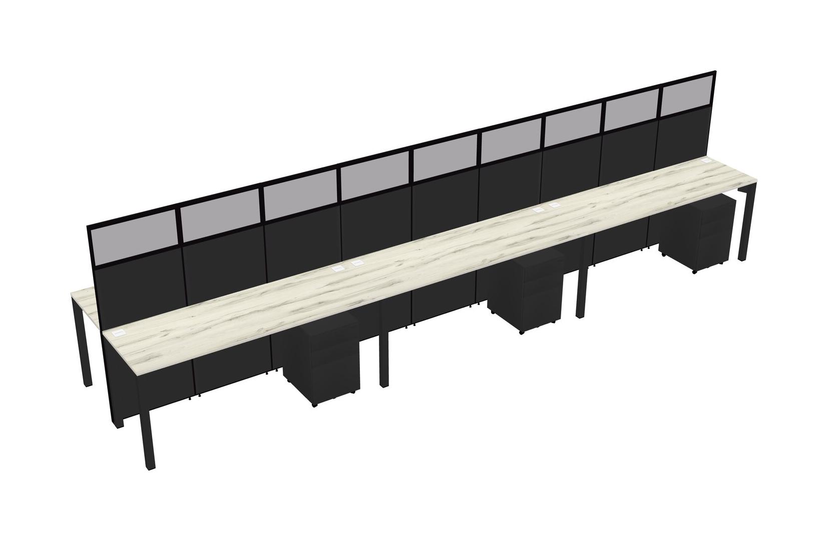 Heinne Holz Shared Rectangular Office Cubicle Panel System With Mobile Drawers For 6 Persons