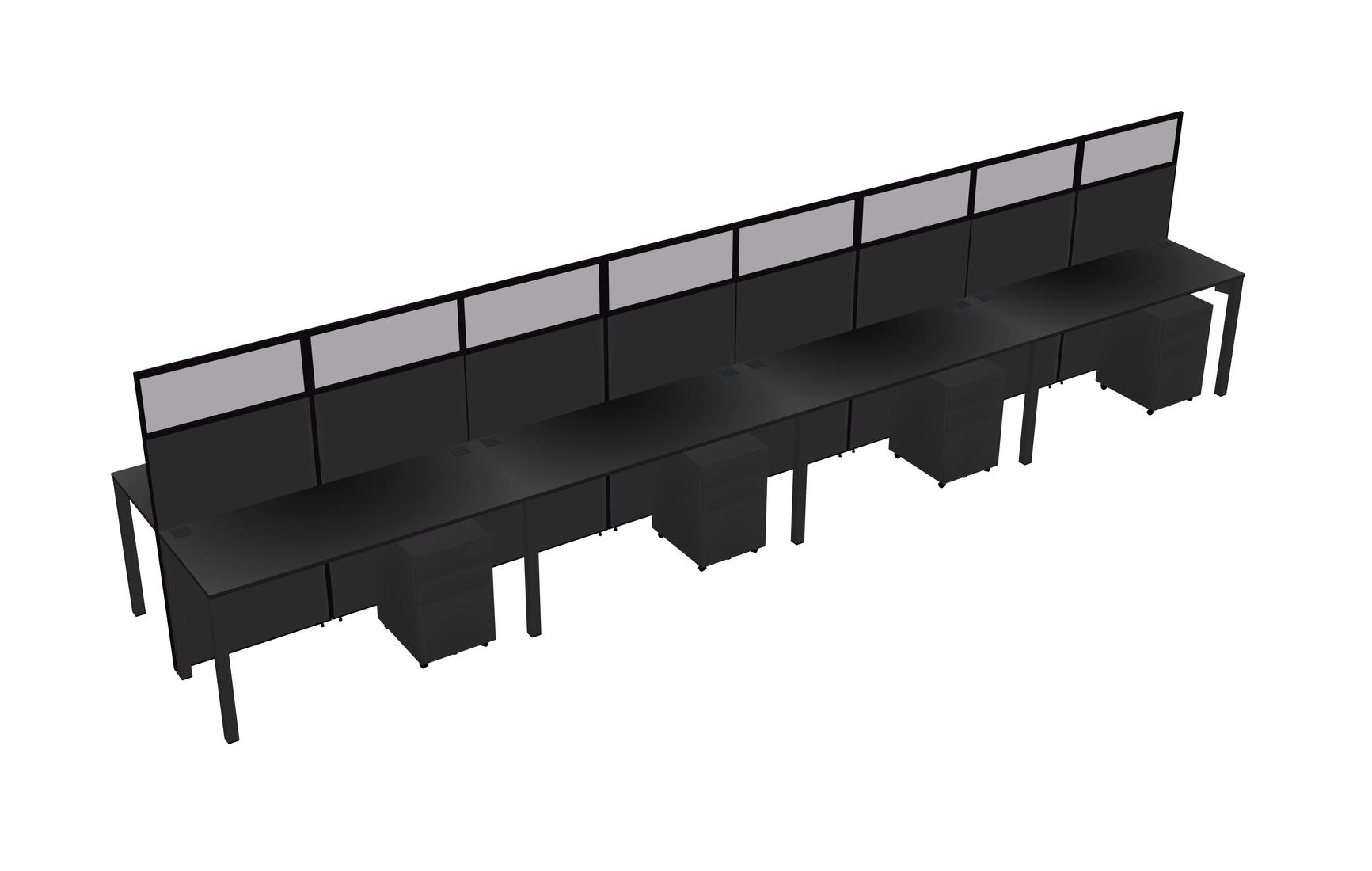 Black Shared Rectangular Office Cubicle Panel System With Mobile Drawers For 8 Persons