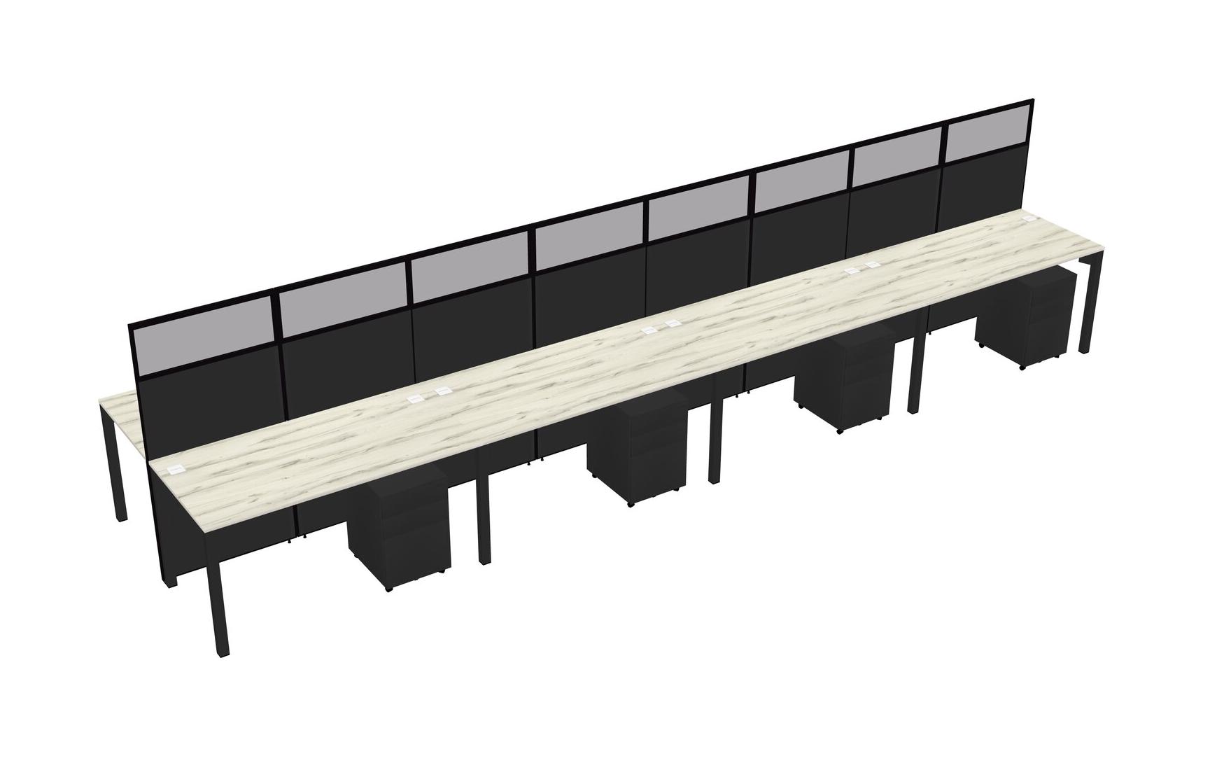 Heinne Holz Shared Rectangular Office Cubicle Panel System With Mobile Drawers For 8 Persons