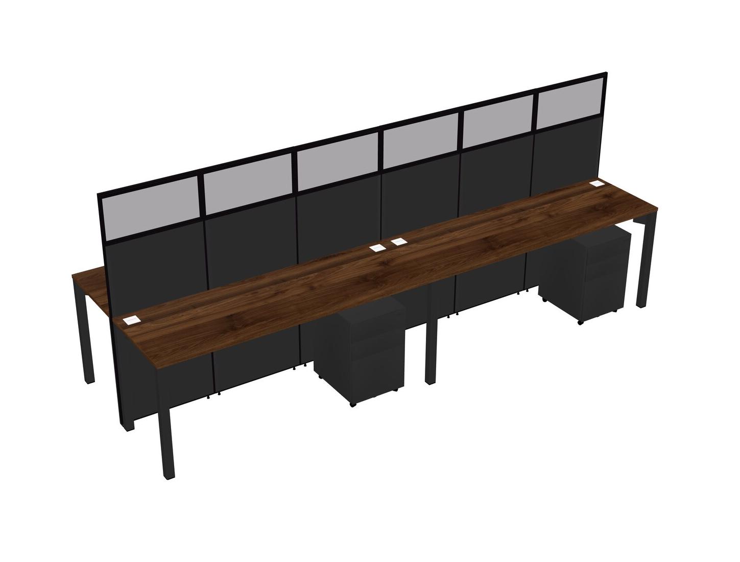 Columbia Walnut Shared Rectangular Office Cubicle Panel System With Mobile Drawers For 4 Persons