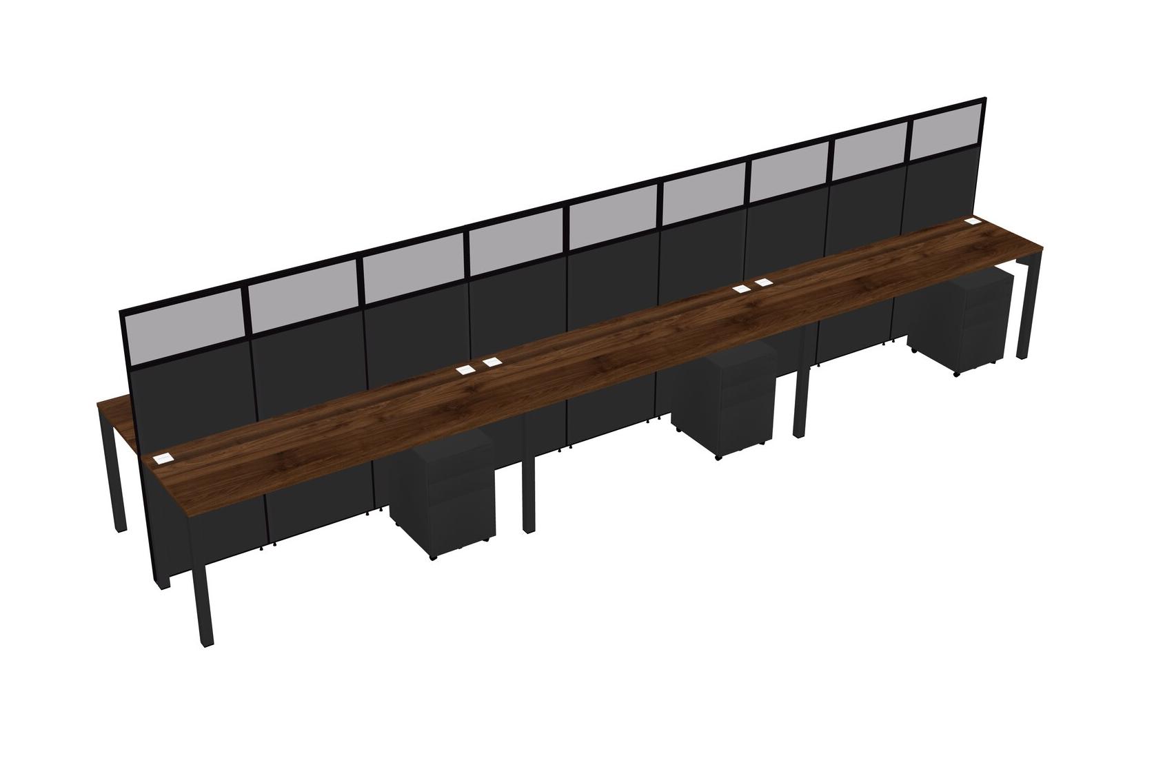 Columbia Walnut Shared Rectangular Office Cubicle Panel System With Mobile Drawers For 6 Persons