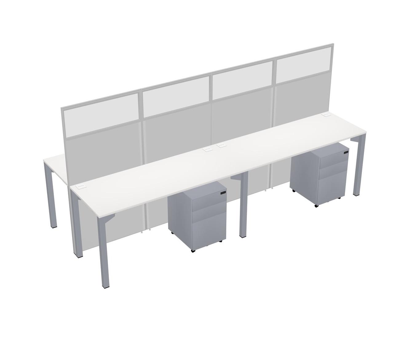 White Shared Rectangular Office Cubicle Panel System With Mobile Drawers For 4 Persons