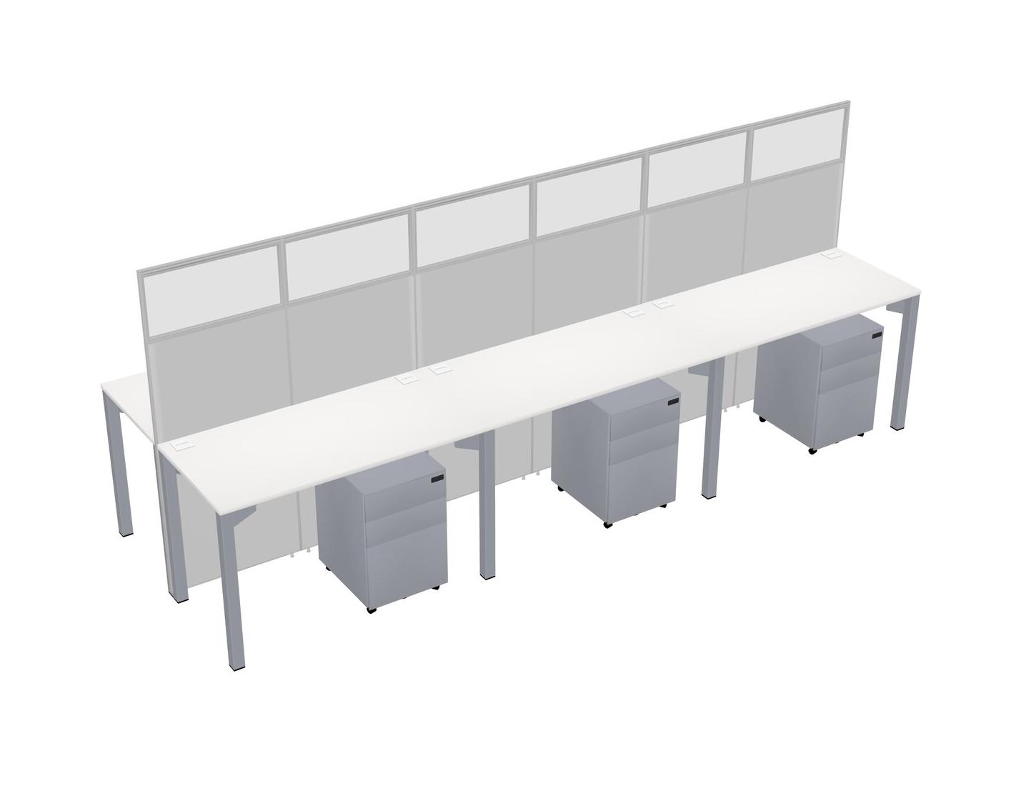White Shared Rectangular Office Cubicle Panel System With Mobile Drawers For 6 Persons