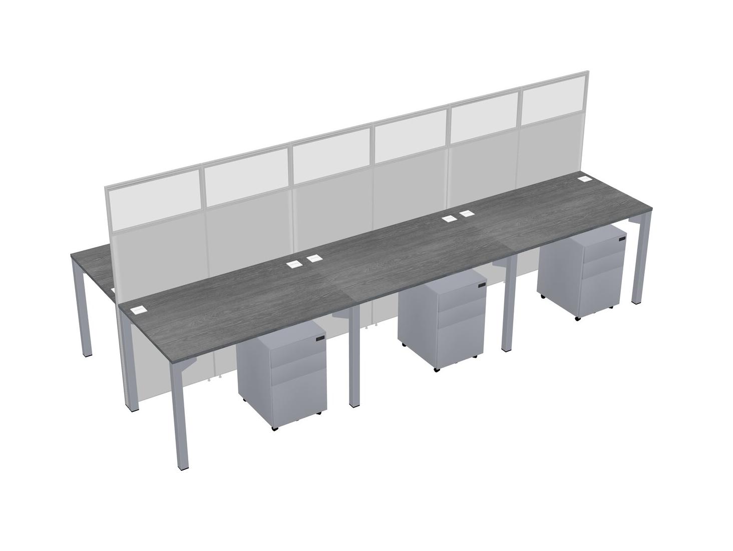 Grey Shared Rectangular Office Cubicle Panel System With Mobile Drawers For 6 Persons