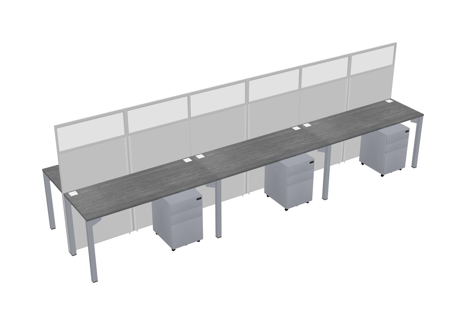 Grey Shared Rectangular Office Cubicle Panel System With Mobile Drawers For 6 Persons