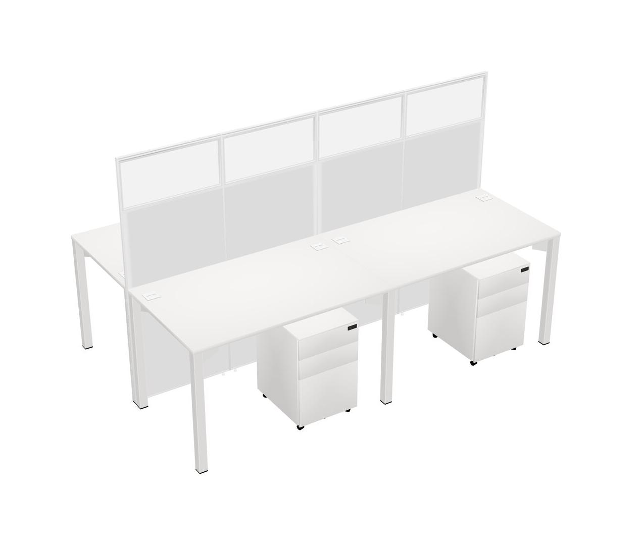 White Shared Rectangular Office Cubicle Panel System With Mobile Drawers For 4 Persons