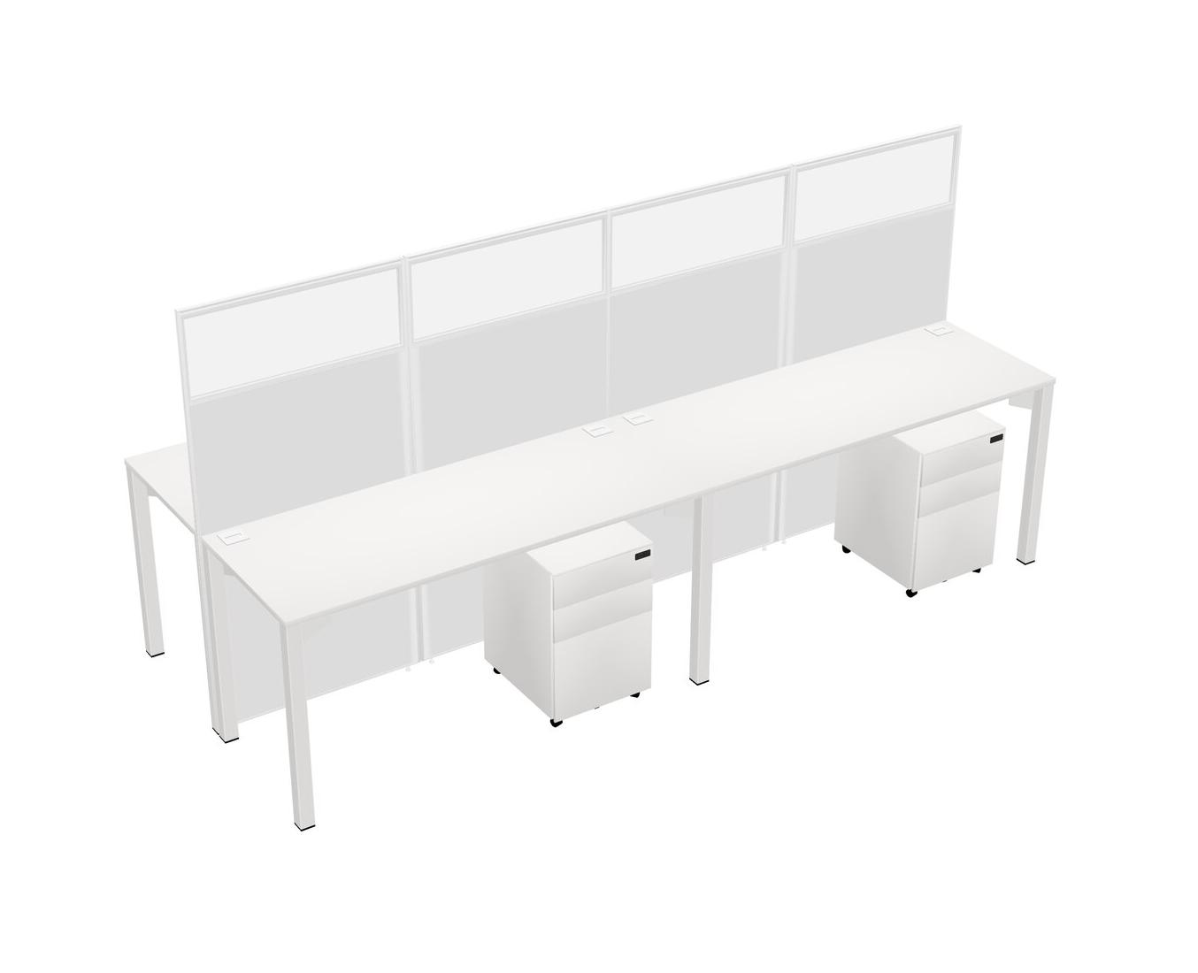 White Shared Rectangular Office Cubicle Panel System With Mobile Drawers For 4 Persons