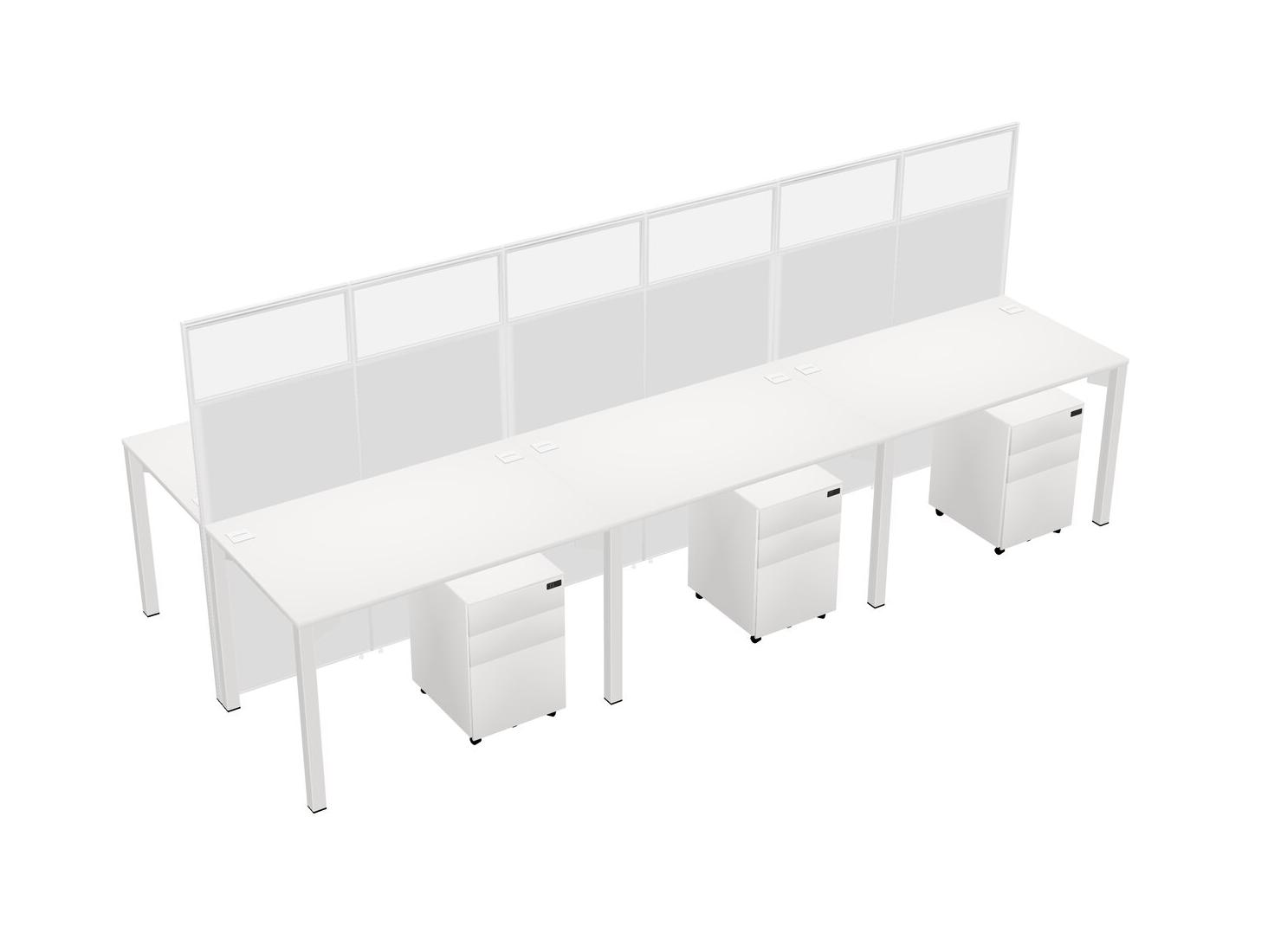 White Shared Rectangular Office Cubicle Panel System With Mobile Drawers For 6 Persons