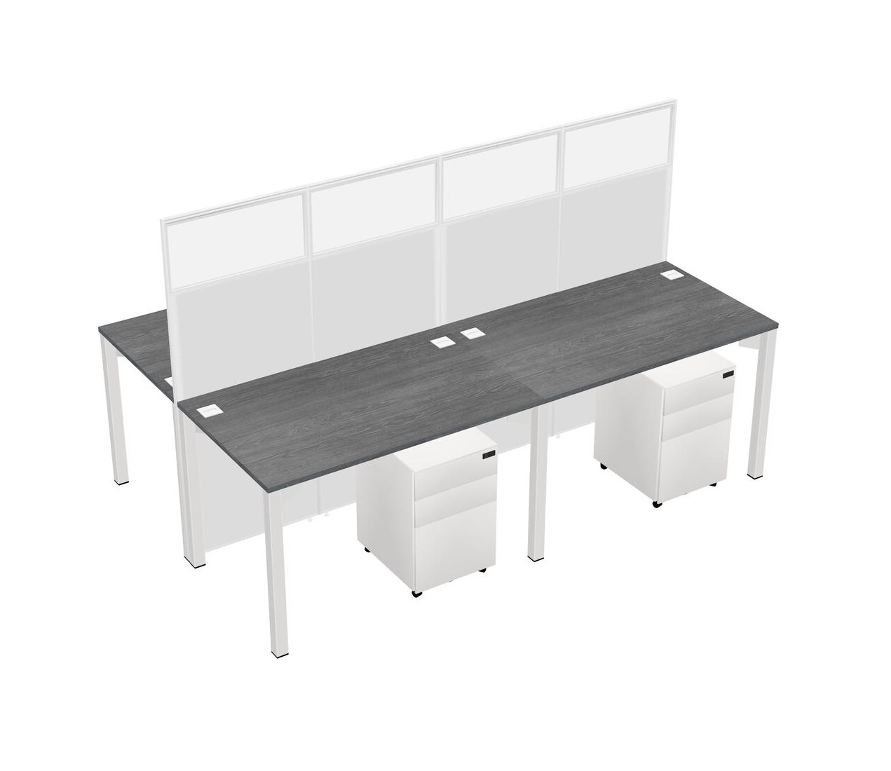 Grey Shared Rectangular Office Cubicle Panel System With Mobile Drawers For 4 Persons