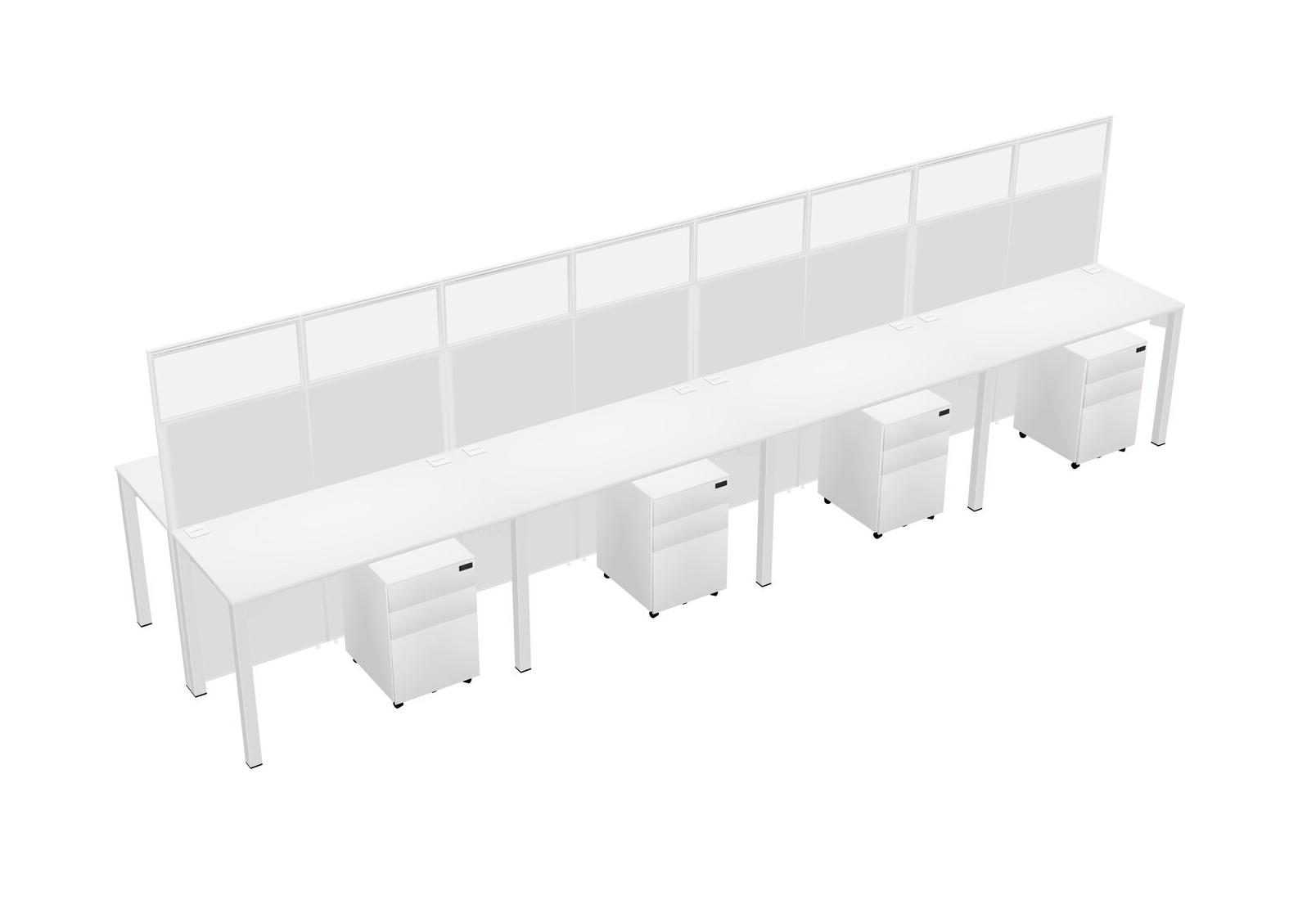 White Shared Rectangular Office Cubicle Panel System With Mobile Drawers For 8 Persons
