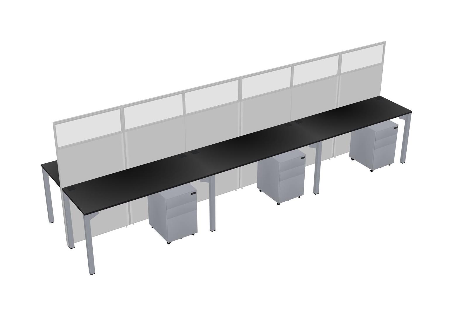 Black Shared Rectangular Office Cubicle Panel System With Mobile Drawers For 6 Persons