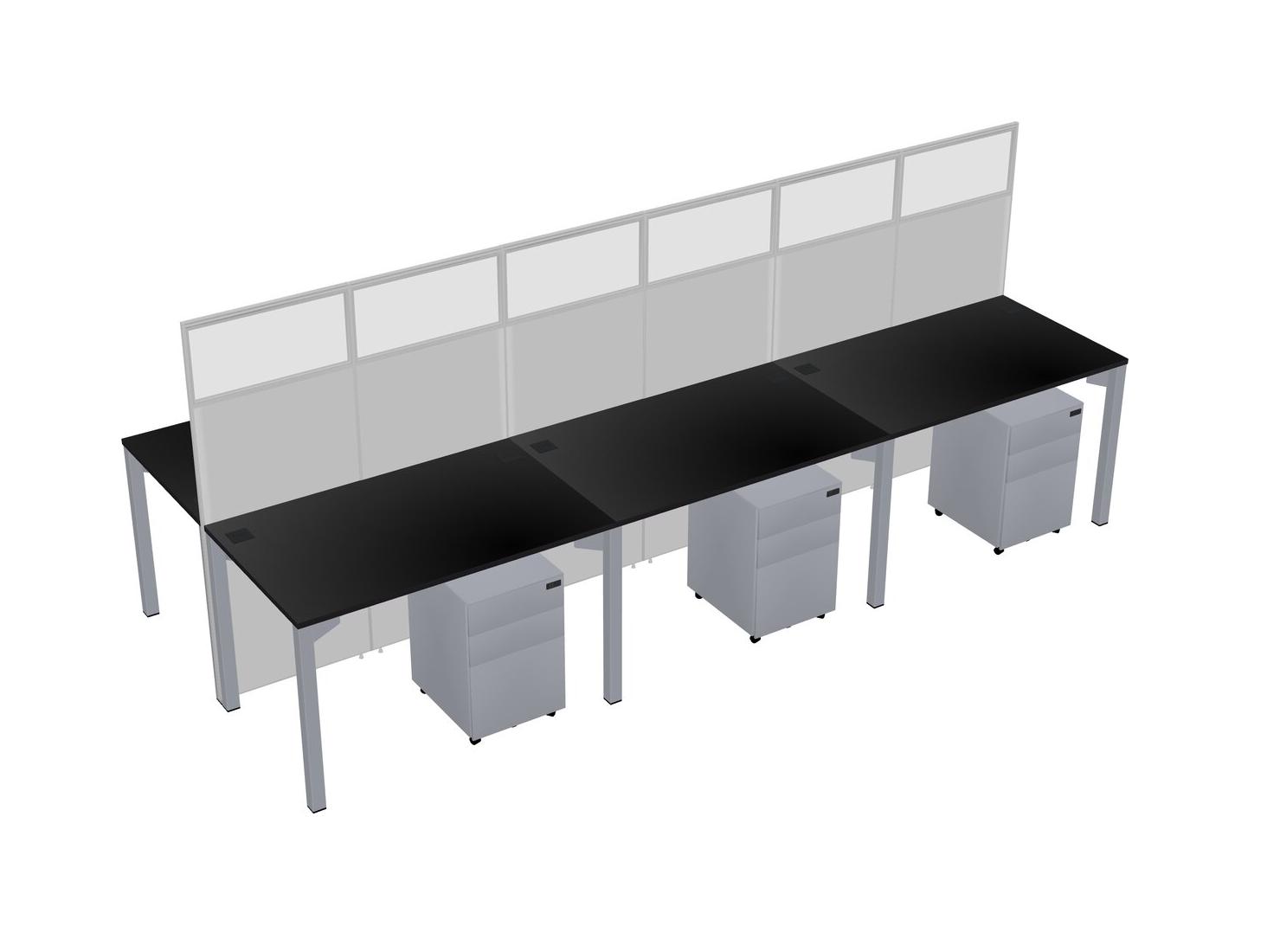 Black Shared Rectangular Office Cubicle Panel System With Mobile Drawers For 6 Persons