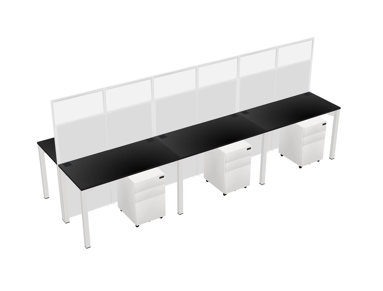 Black Shared Rectangular Office Cubicle Panel System With Mobile Drawers For 6 Persons