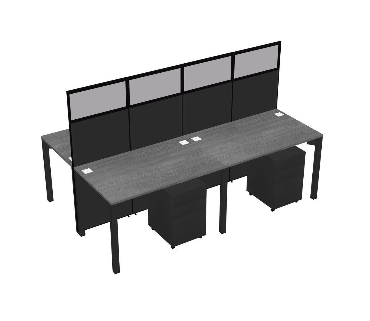 Grey Shared Rectangular Office Cubicle Panel System With Mobile Drawers For 4 Persons