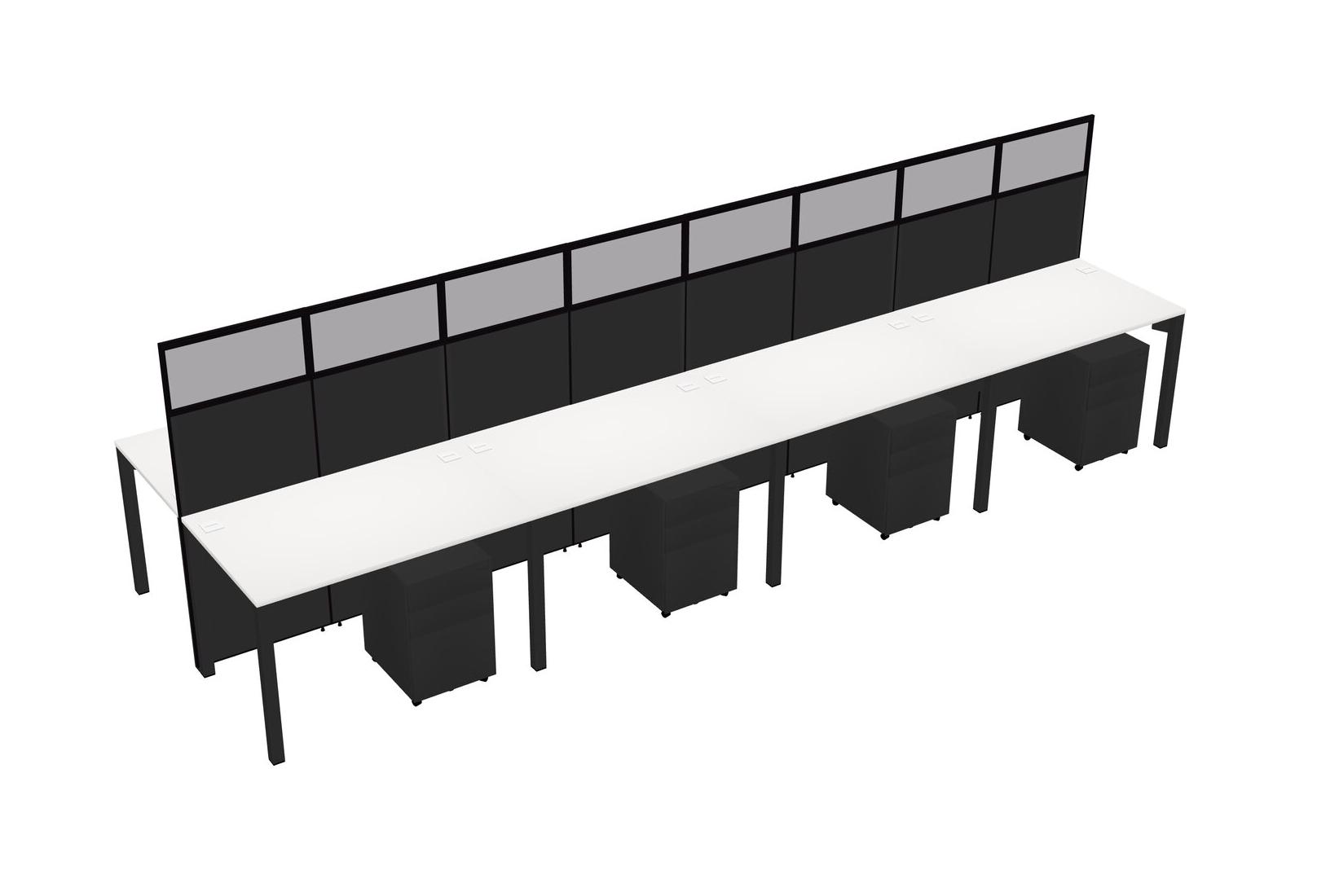 White Shared Rectangular Office Cubicle Panel System With Mobile Drawers For 8 Persons