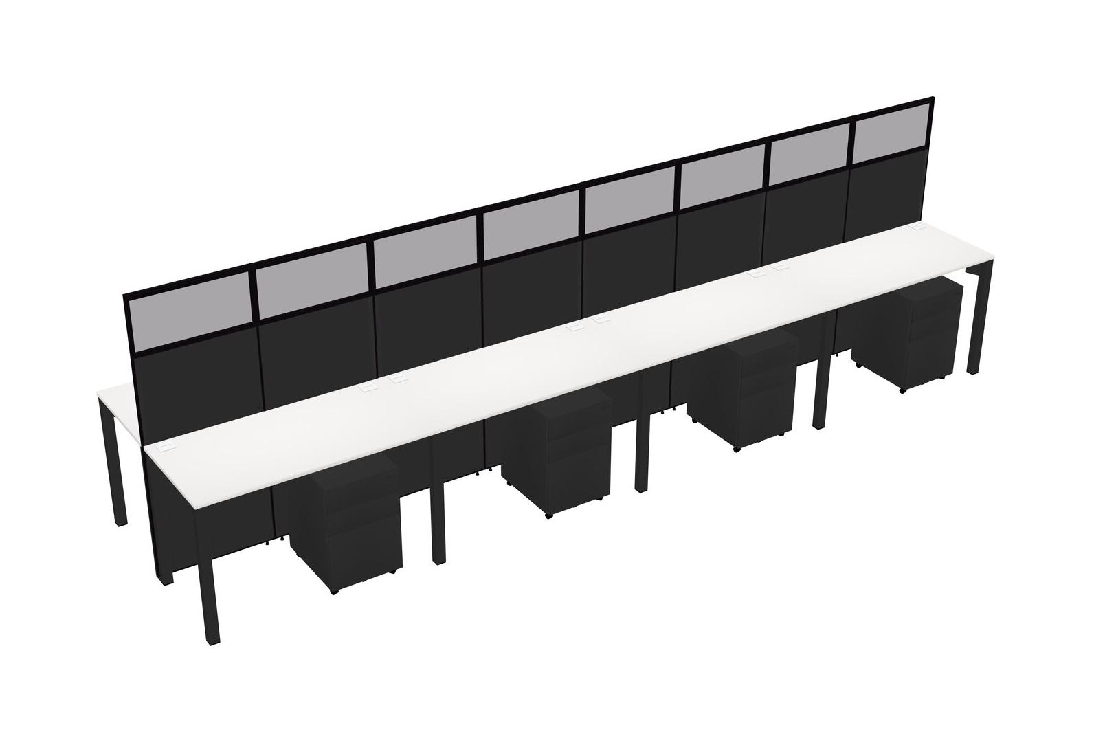 White Shared Rectangular Office Cubicle Panel System With Mobile Drawers For 8 Persons