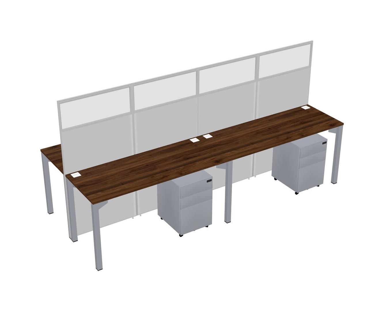 Columbia Walnut Shared Rectangular Office Cubicle Panel System With Mobile Drawers For 4 Persons