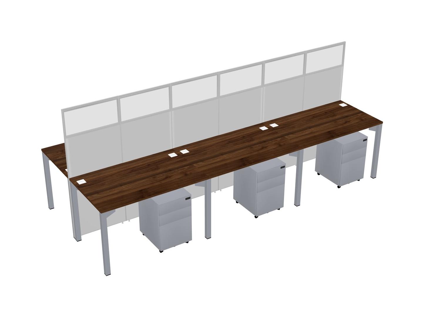 Columbia Walnut Shared Rectangular Office Cubicle Panel System With Mobile Drawers For 6 Persons