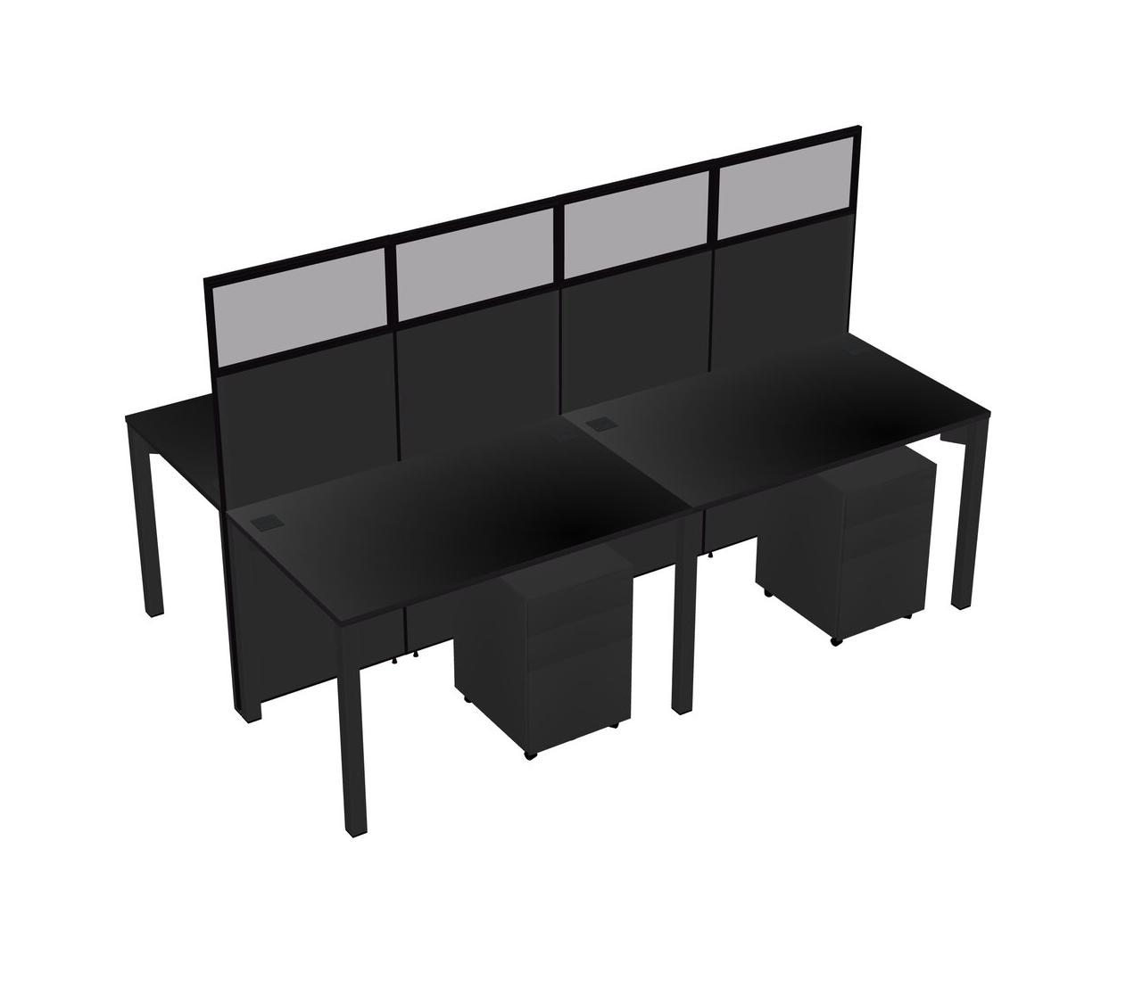 Black Shared Rectangular Office Cubicle Panel System With Mobile Drawers For 4 Persons