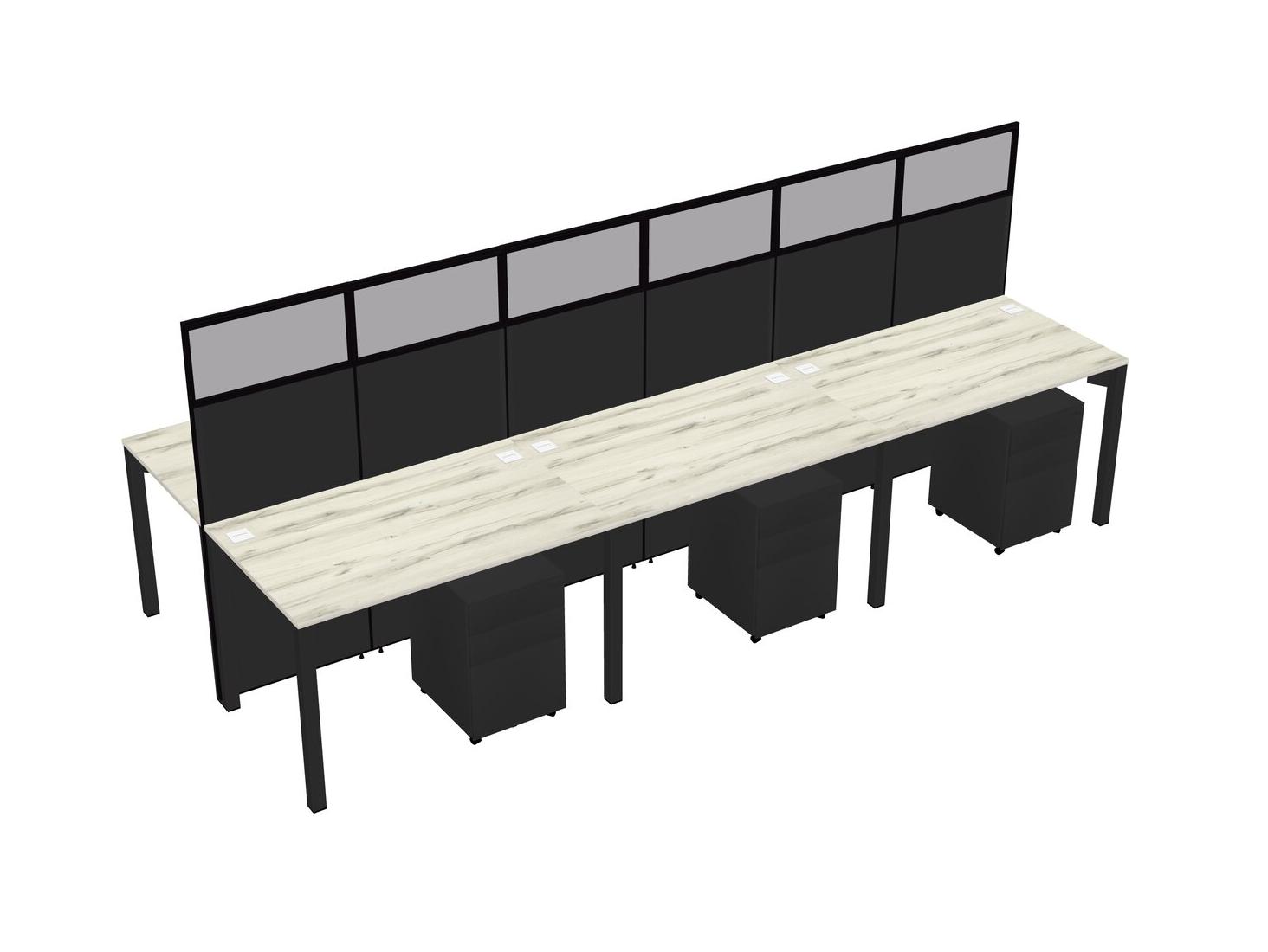 Heinne Holz Shared Rectangular Office Cubicle Panel System With Mobile Drawers For 6 Persons