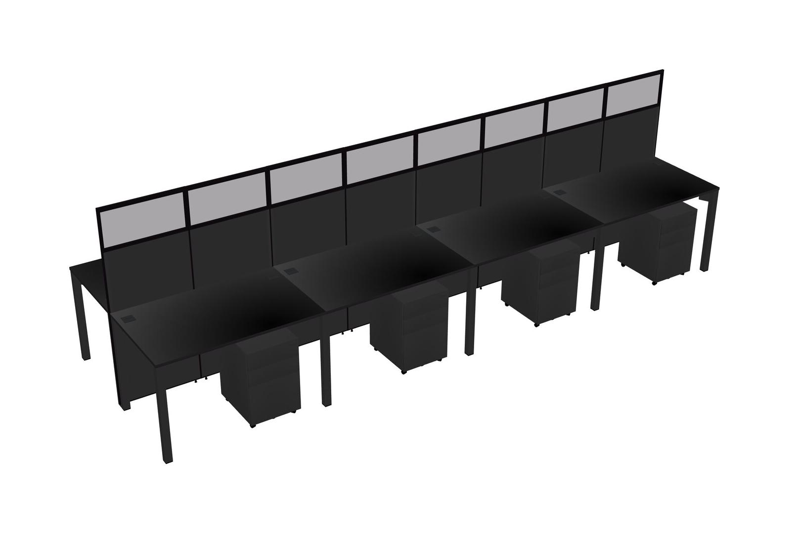 Black Shared Rectangular Office Cubicle Panel System With Mobile Drawers For 8 Persons