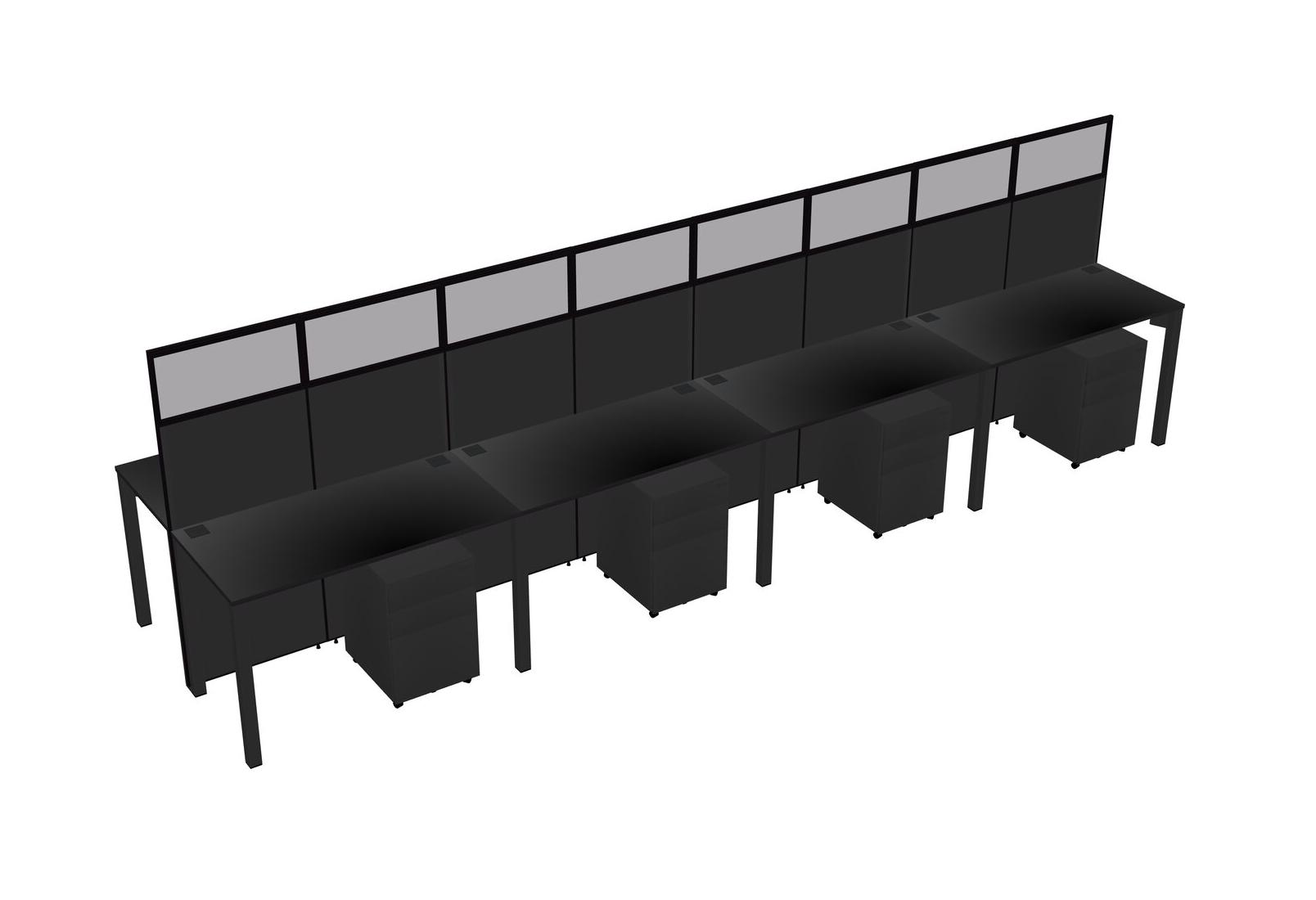 Black Shared Rectangular Office Cubicle Panel System With Mobile Drawers For 8 Persons