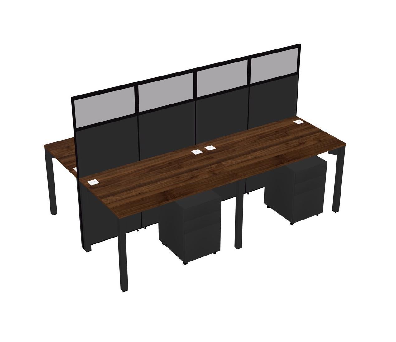 Columbia Walnut Shared Rectangular Office Cubicle Panel System With Mobile Drawers For 4 Persons